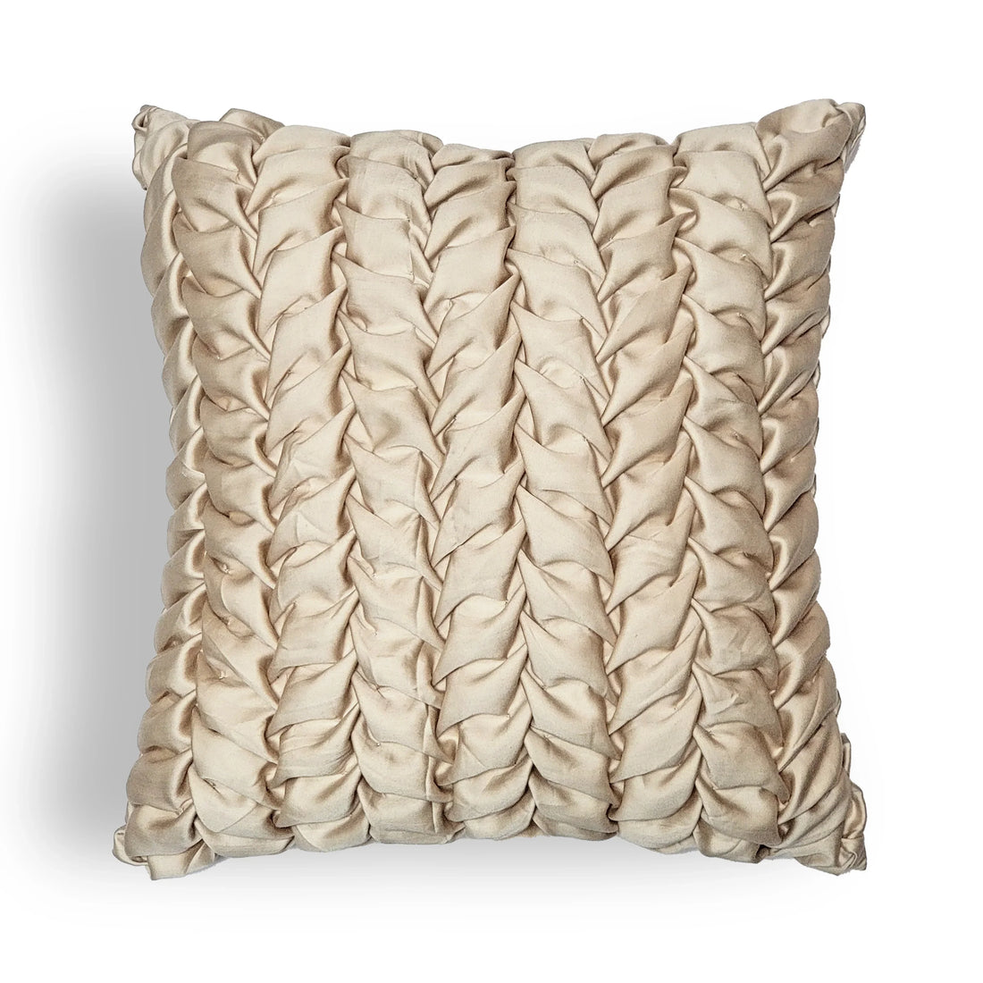 Description: Elevate your space with this luxurious cushion, featuring soft vertical pleats in a warm...