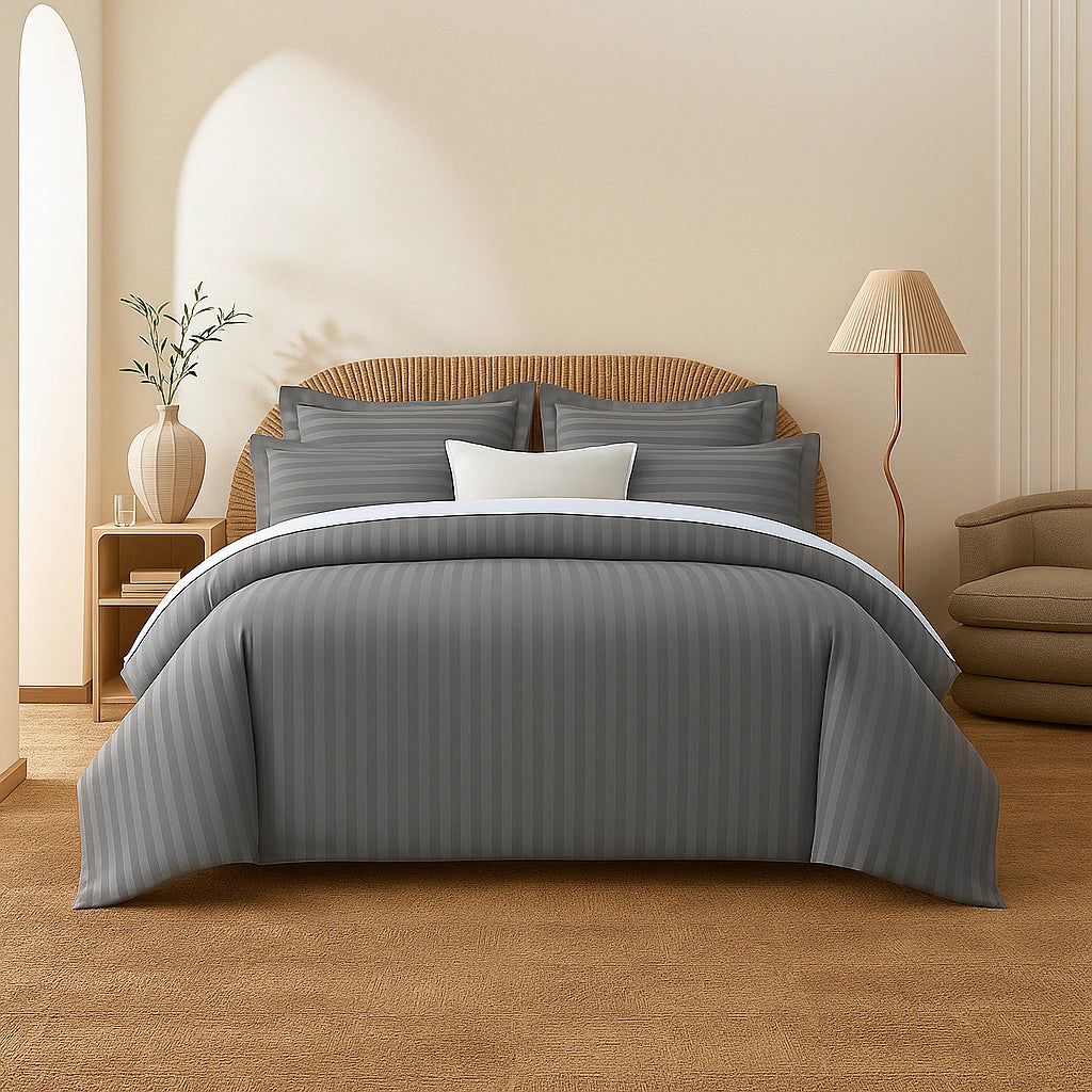 Grey Stripes Duvet Cover Set 6PCS