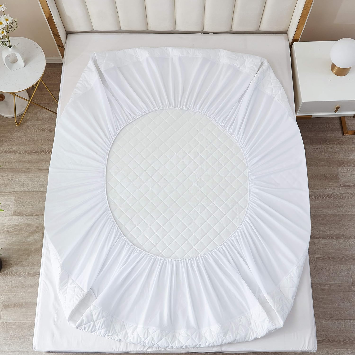Protect your mattress and enhance your comfort with our Premium Quilted Mattress Protector. Designed to keep your bed fresh, clean, and cozy, this protector features a soft, breathable top layer with diamond quilting for added cushioning and durability.