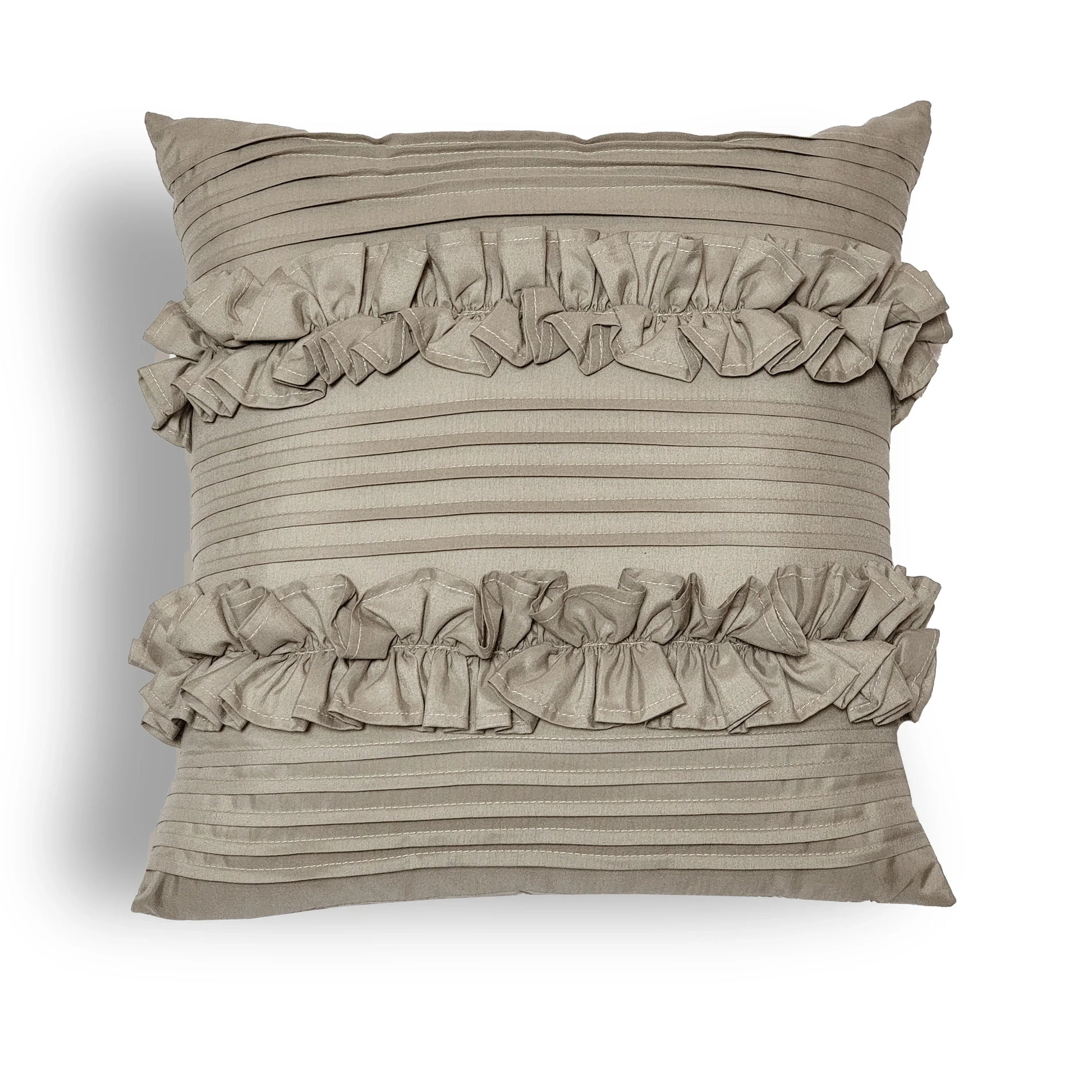 Add a touch of elegance to your space with this Sahara Ruffle Cushion, featuring fine pleated lines and delicate double ruffle detailing. Crafted from premium microfiber, it blends style and softness for everyday luxury.